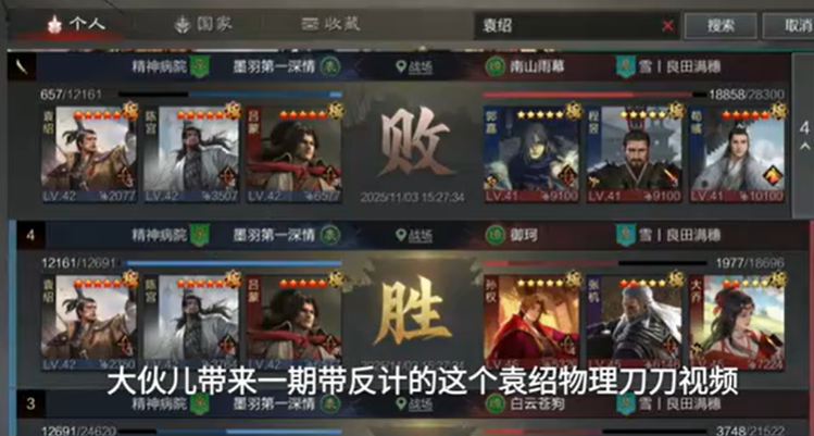 牢九门之带反计版十五红袁绍物理刀官渡实战战报