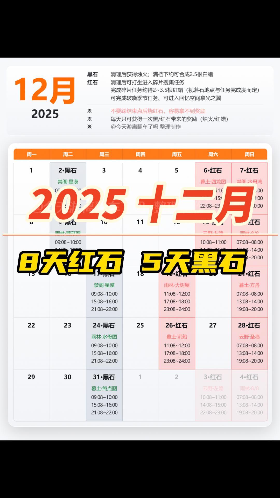 【十二月预估落石排期】【12月红石日历】【落石规律】