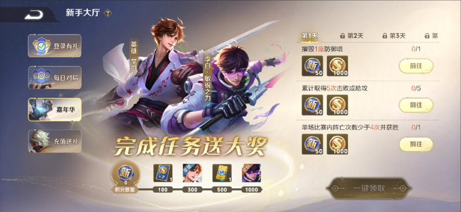 这个主要是针对新手玩家,或者新建号的玩家,原本的新手任务,将升级成【嘉年华】活动,玩家每日完成对应的任务,即可获取嘉年华的积分。