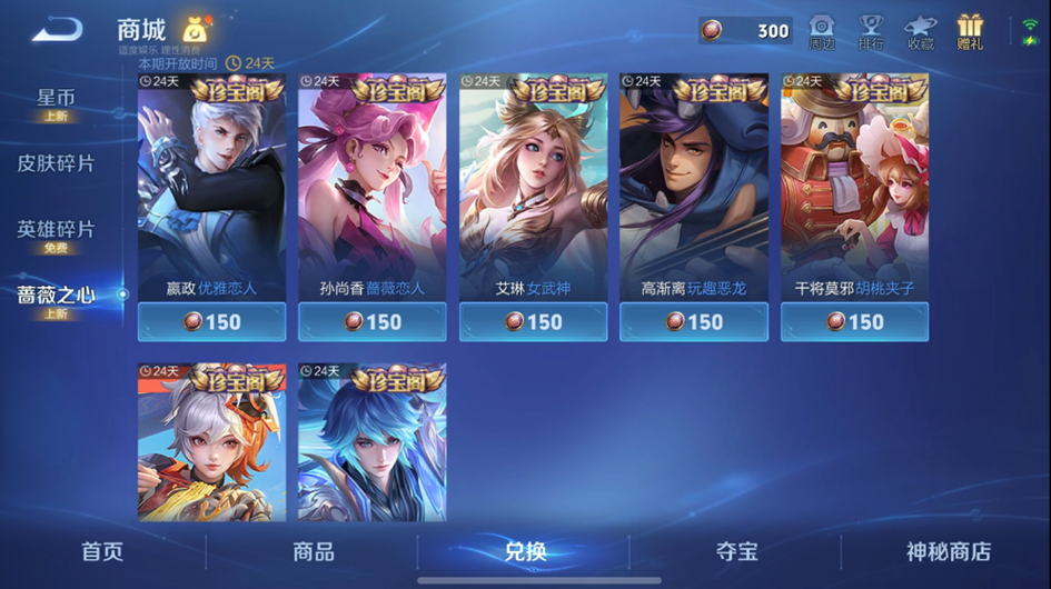 我不知道这个设定出于怎样的考虑,如果只是在“兑换”界面加一个限时的蔷薇之心窗口,我觉得也没啥特别的意义,但从体验服目前仍然带时效的倒计时来看,似乎也并不是商城常驻。