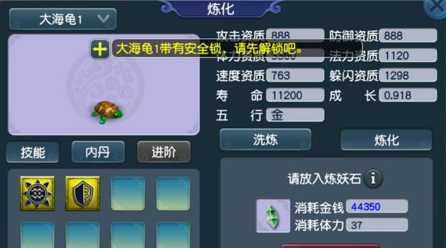 当玩家把自己的遭遇分享出来后,立马引起了大范围的讨论。都说梦幻西游人才多,很快就有好心人推荐"炼妖石"。都走到这一步了,玩家只能选择尝试,然而,当玩家准备炼化时,突然跳出了"大海龟带有安全锁,请先解锁吧。",看到这个提示后,也意味着炼妖石的失败,看来这个时间锁真的太厉害。