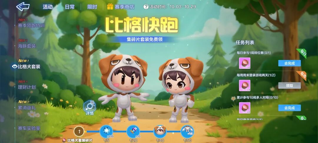 耷拉着的大耳朵、挑衅又萌萌的眼神,调皮可爱的性格让人无法拒绝!10月3日起,每日完成任务,比格犬套装免费兑换,化身可爱的小比格大闹一场吧~