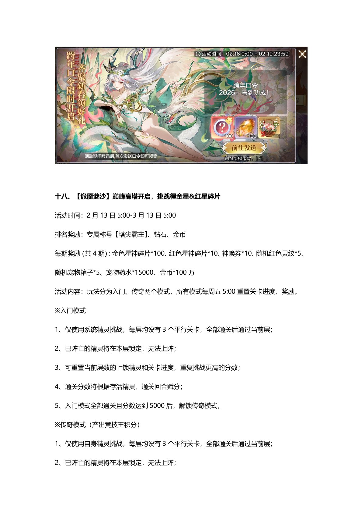 2月13日更新公告-源起无烬龙&维蕾塔降临,新春福利来袭!