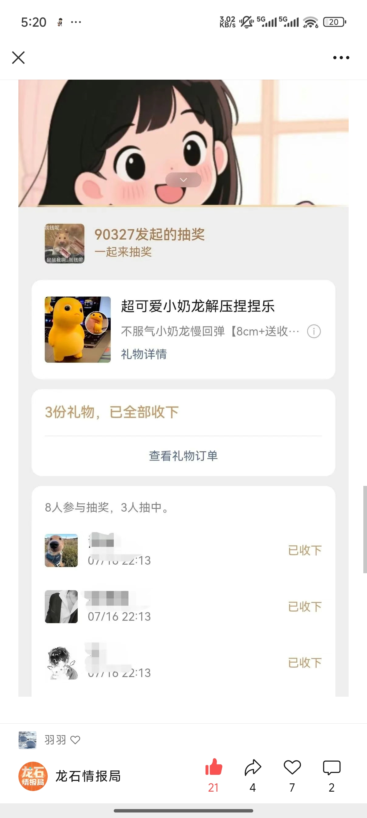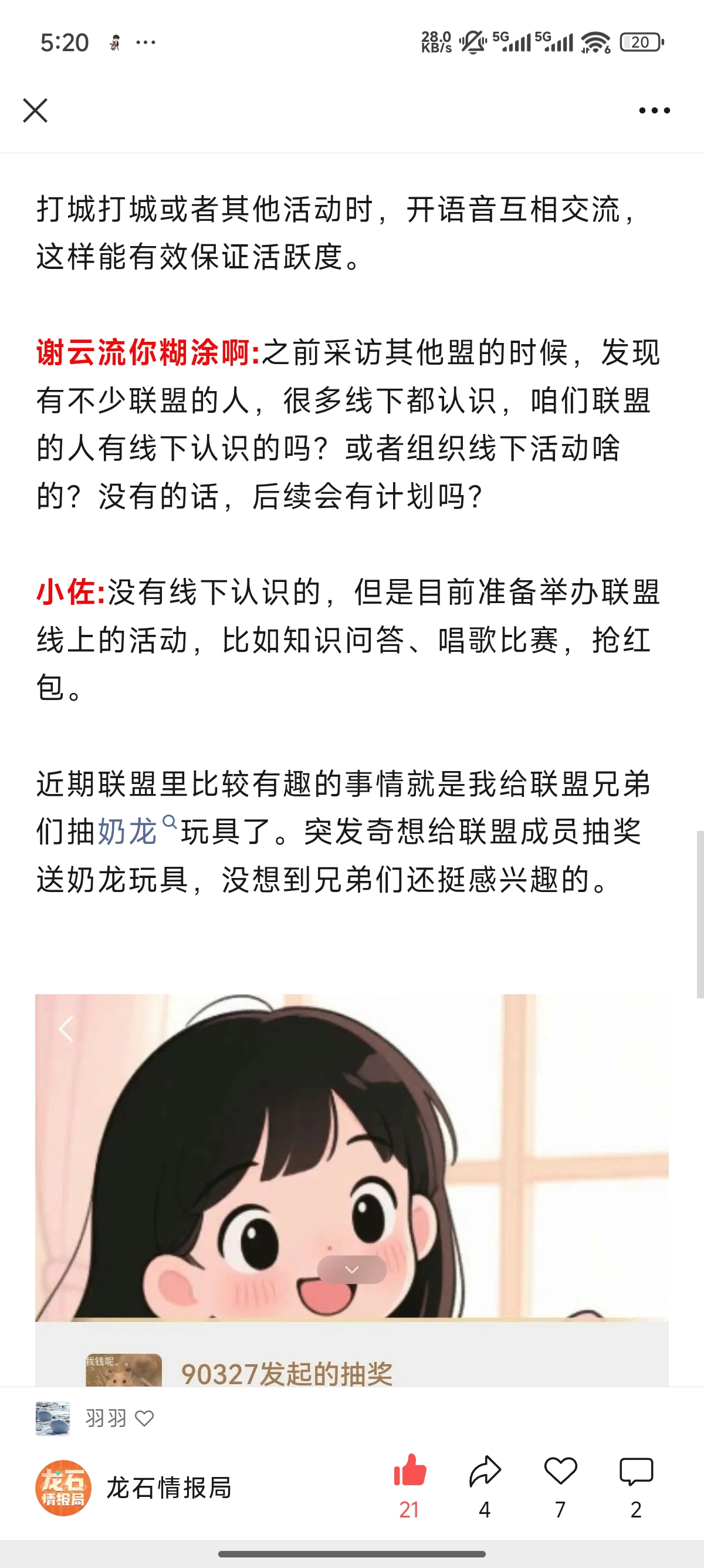 近期联盟里比较有趣的事情就是我给联盟兄弟们抽奶龙玩具了。突发奇想给联盟成员抽奖送奶龙玩具,没想到兄弟们还挺感兴趣的。