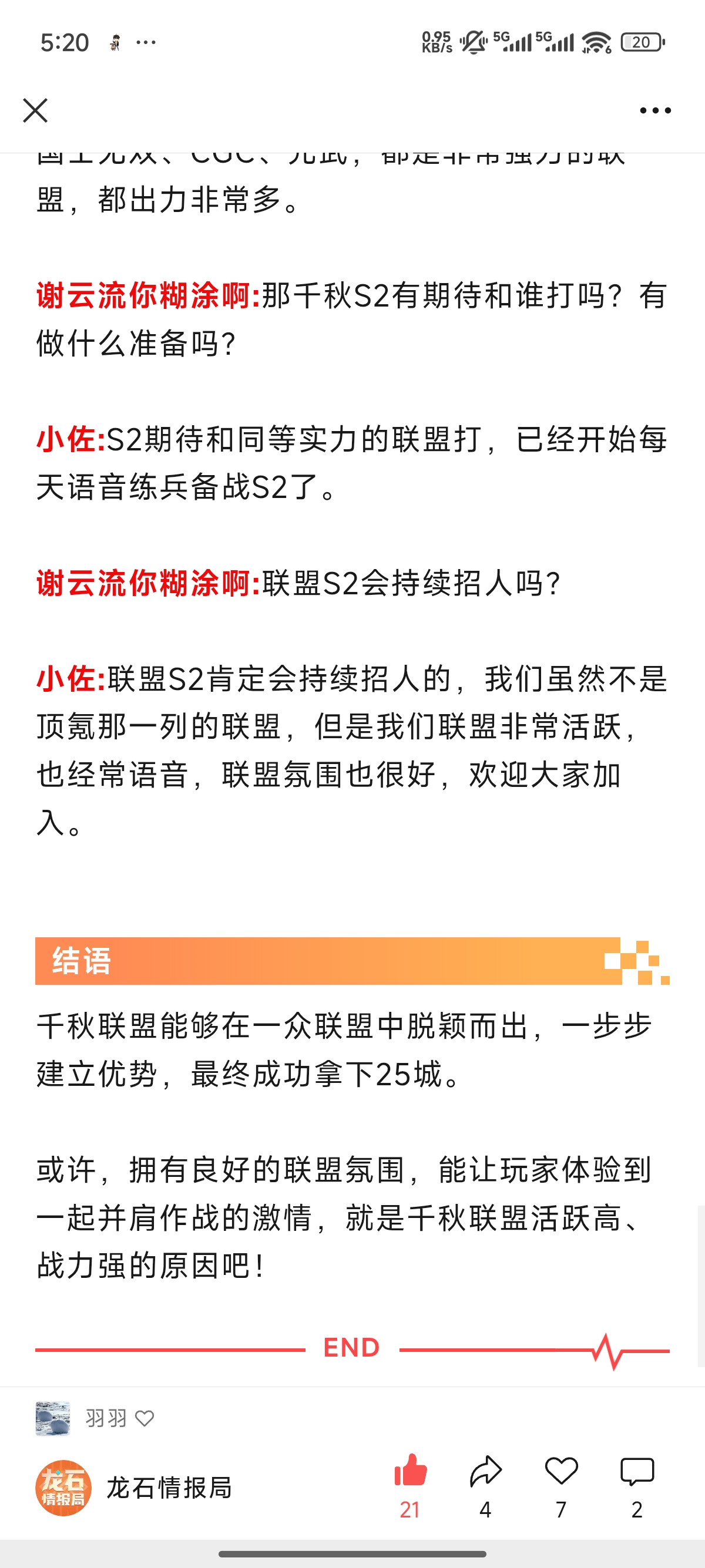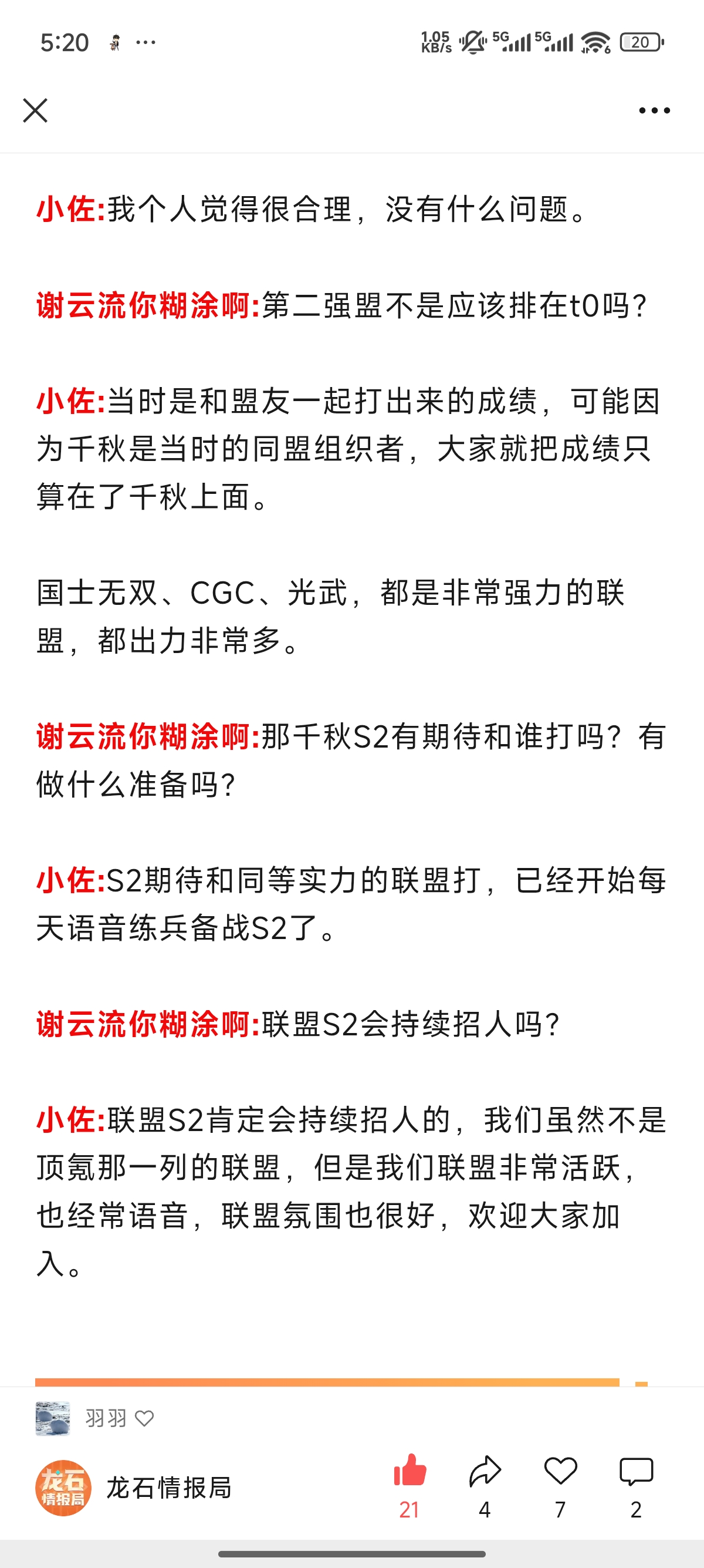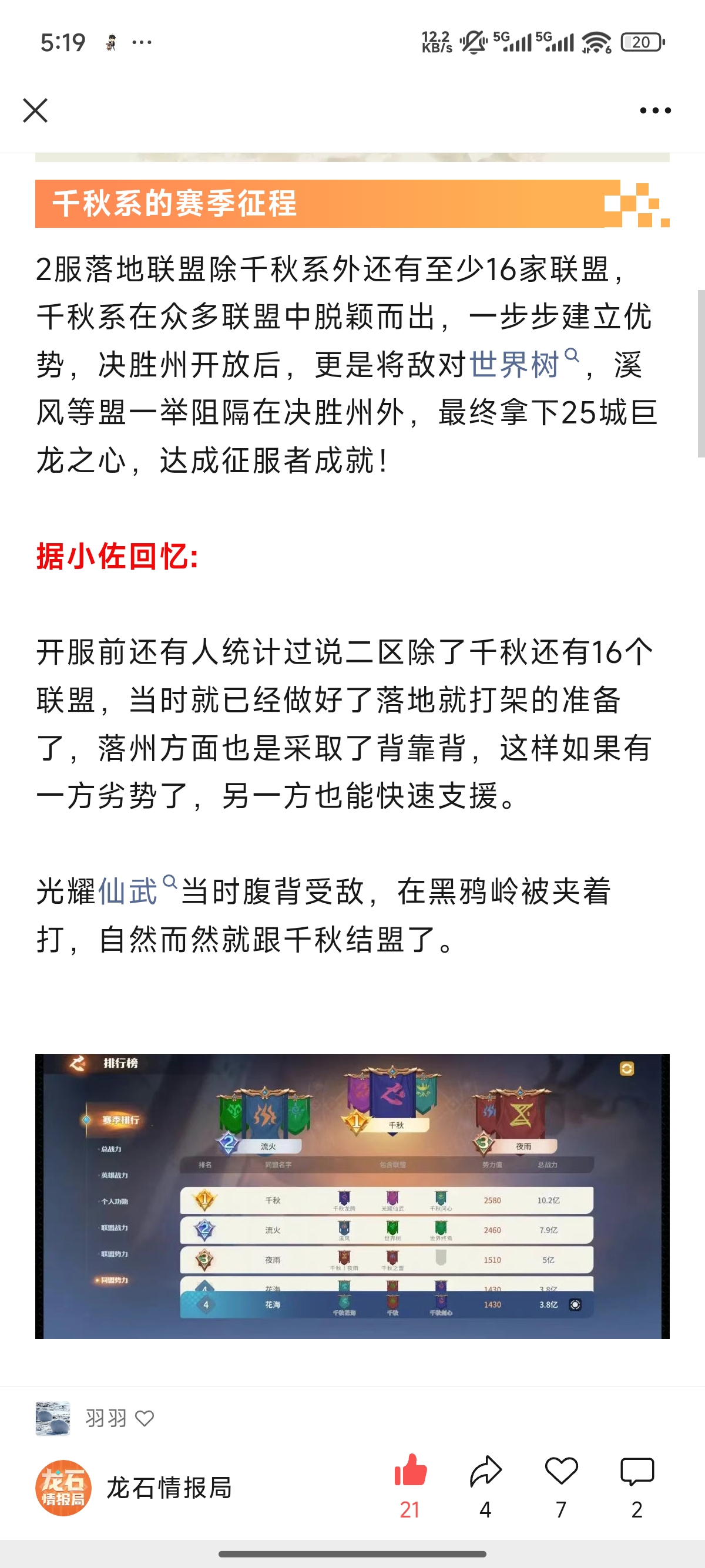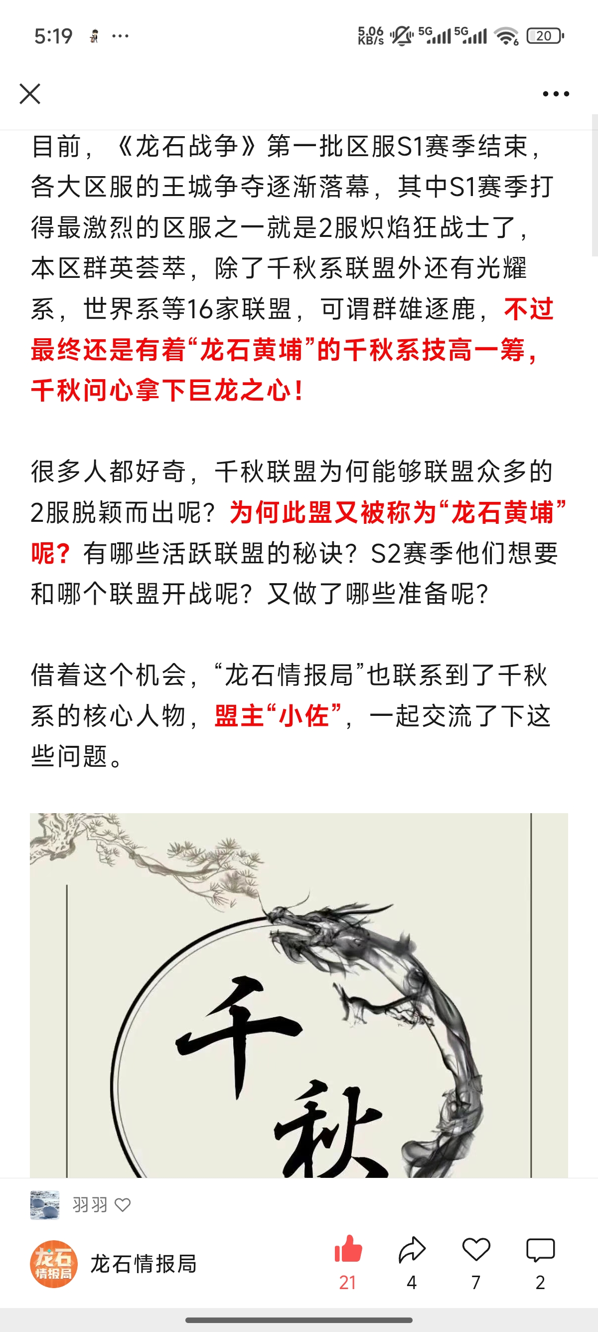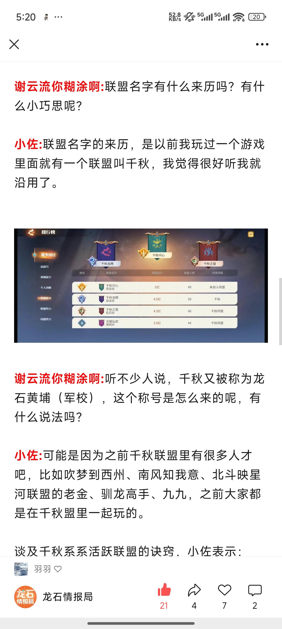 小佐:联盟名字的来历,是以前我玩过一个游戏里面就有一个联盟叫千秋,我觉得很好听我就沿用了。