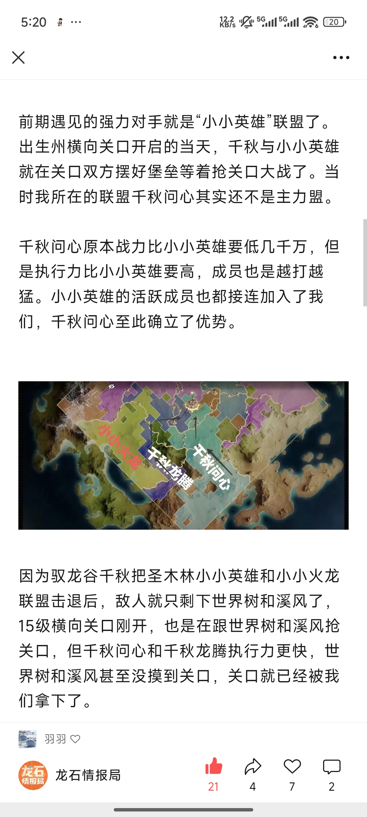 因为驭龙谷千秋把圣木林小小英雄和小小火龙联盟击退后,敌人就只剩下世界树和溪风了,15级横向关口刚开,也是在跟世界树和溪风抢关口,但千秋问心和千秋龙腾执行力更快,世界树和溪风甚至没摸到关口,关口就已经被我们拿下了。