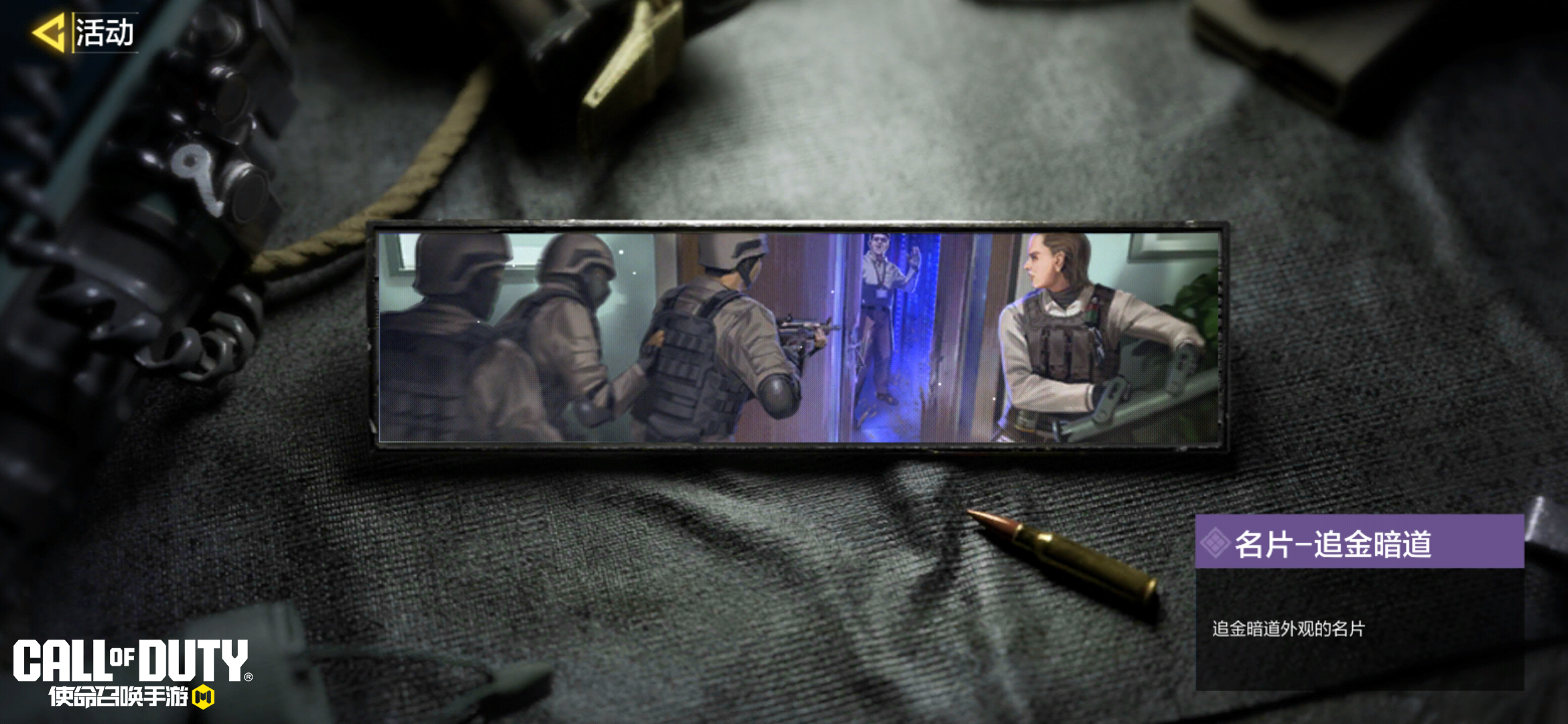 在追金暗道心愿箱中,还有坦克-聚能接口、喷漆-撼门锤击、名片-追金暗道等奖励与战士们共同待命。