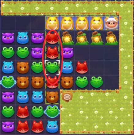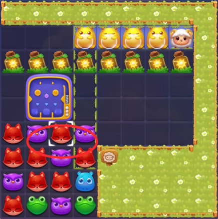 3:旁消消除击打特效盒,让其产出特效助力消除上方的棉花糖,打开缺口可让更多的动物掉落