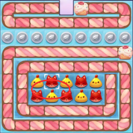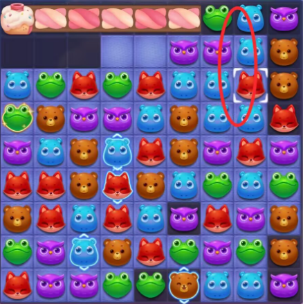 4:收尾时以贴边三消消除为主,优先击打消除棉花糖,并配合直线特效等助力消除给空地位置铺设牛仔布