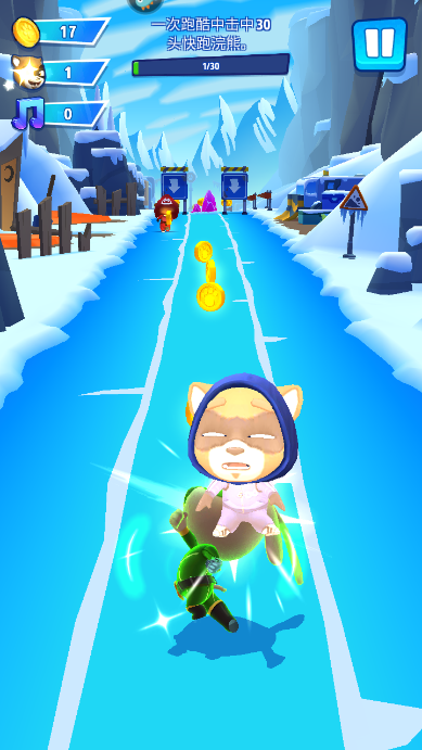 在特别任务中,角色跑酷的速度会大大加快,虽然只需要击中30头快跑浣熊,但这个可不简单,因为快跑浣熊会提前跑一段路程,因此就意味着我们通关所需要跑酷的距离大大加长了。在跑酷路上,同样包含了金币拾取,在这么快节奏下,还是需要我们适当放弃一些奖励才能够稳稳拿下任务奖励哦。