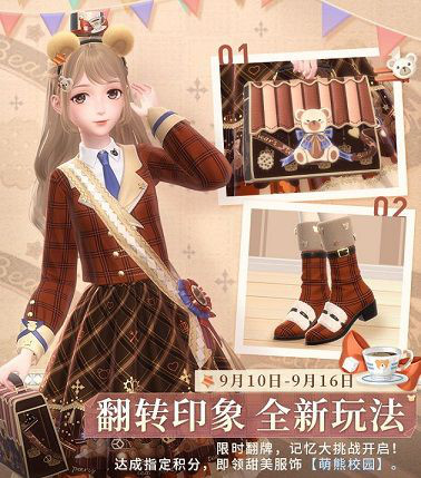 完成挑战达成指定积分,玩家即可领取稀有甜美服饰“萌熊校园”!戴上这对软萌的熊耳,来和胖嘟嘟的小熊玩偶甜蜜共舞吧。