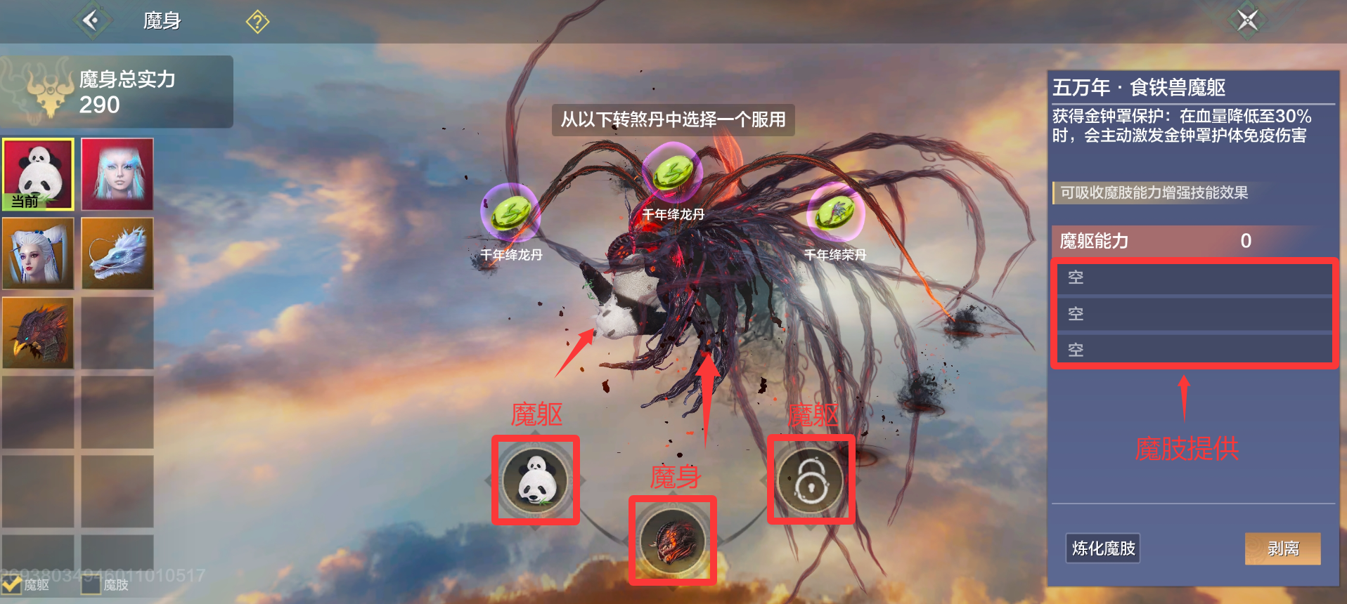 魔躯决定了魔化宠物魔化状态时的增益和辅助战斗效果,对战力提升极为重要。