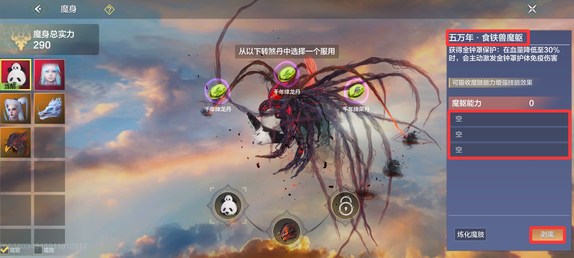 因此,作为魔躯的宠物/魔肢宠物年份越高越好。当然,若是一时没有高年份魔躯也不用担心,魔躯随时都可以无损接入/剥离,之后再换也可以。