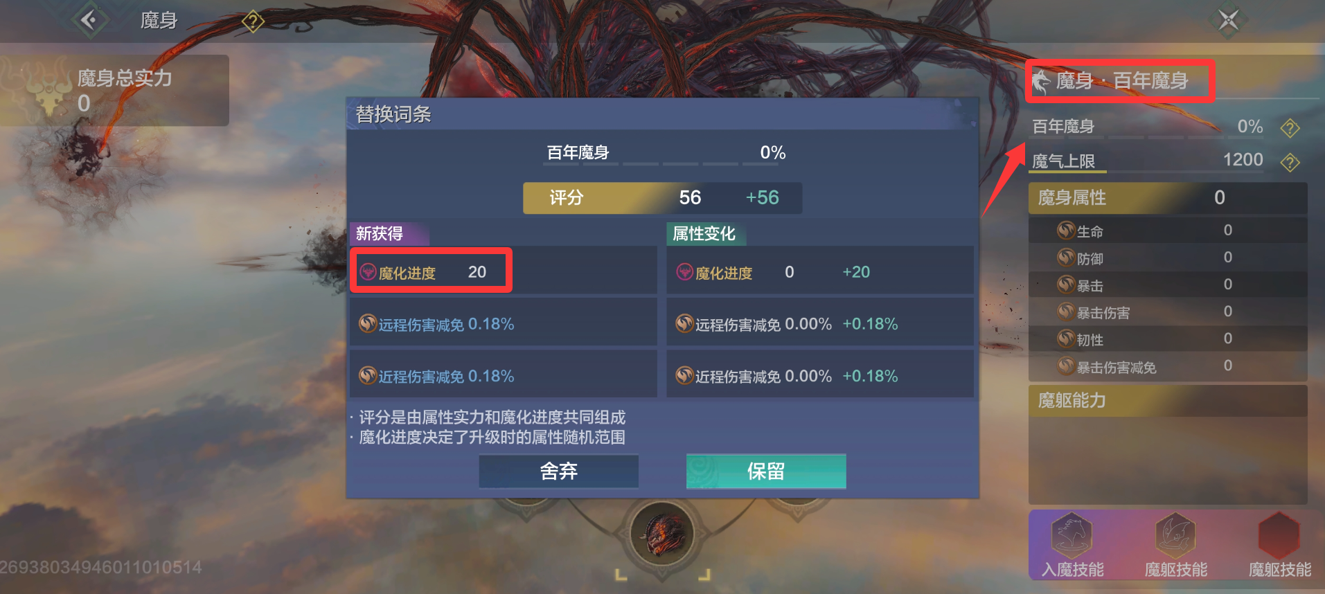 ②魔化进度决定了魔身属性随机范围的上/下限和属性种类,魔化进度高时魔身属性品质更好。