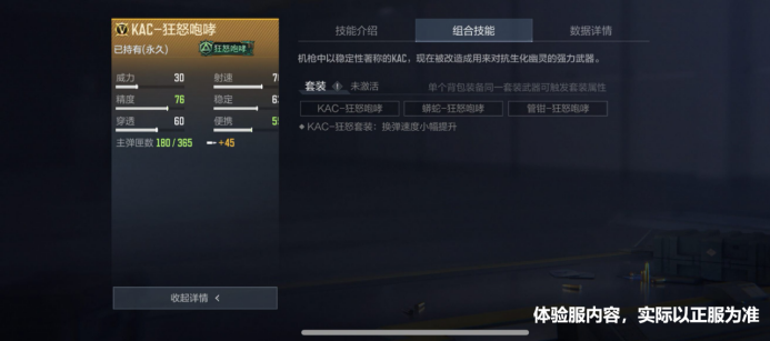 与副武器蟒蛇-狂怒咆哮和近战武器管钳-狂怒咆哮合成套装后还能获得“换弹速度小幅提升“的套装属性。