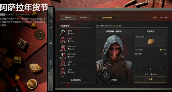 2月13日-2月26日,阿萨拉年货节开启,玩家完成每日任务获得阿萨拉糖果,售卖糖果积攒拜年币,消耗拜年币即有机会获得传说或史诗捆绑包外观、乙已玄武等珍稀收藏品。