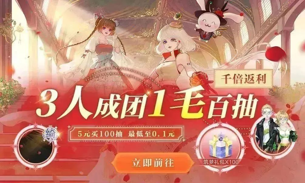 6月22日至6月24日期间,与buff玩家成团,全团均可以按照折扣价格购买逐梦礼包——5元买100抽,最低至0.1元(buff玩家定义为6.15-入队前未登录游戏的玩家或6月22日0点后新注册账号的新玩家)!