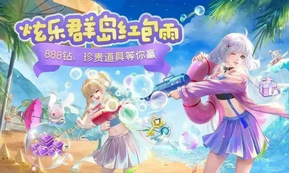6月21日至6月24日期间,登录游戏并完成任务,可得888钻石(概率得)、称号-喜欢你鸭、钻石、岛屿礼盒、银霜秘钥、鎏金秘钥等奖励。
