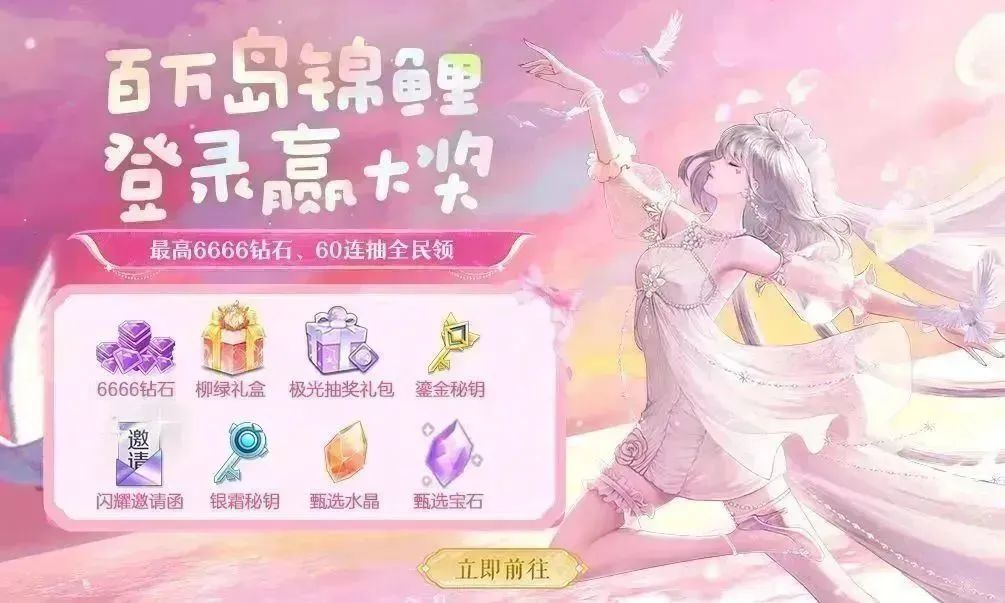 6月22日至7月16日期间,登录游戏可得银霜秘钥、鎏金秘钥、极光抽奖礼包等好礼,进行抽奖还有机会得6666钻石大奖!