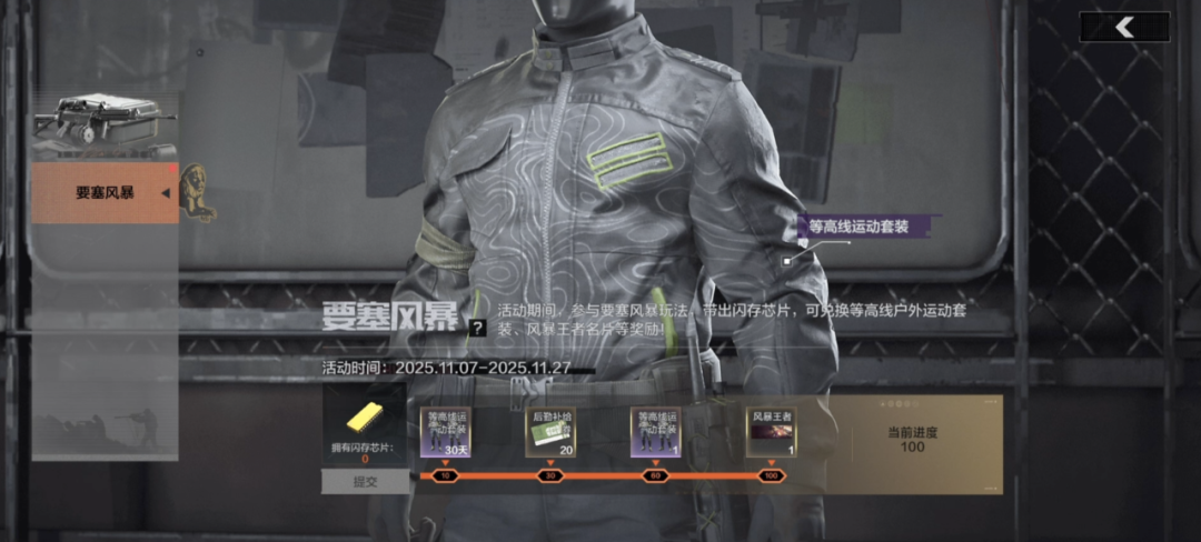 在活动页面提交指定数量之后即可兑换专属套装【等高线运动套装】、风暴王者名片等丰厚奖励!