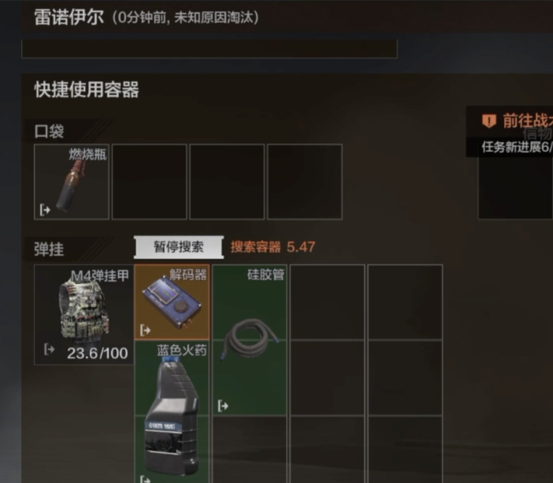 等待机密终端解码完毕即可获得任务道具【闪存芯片】,闪存芯片可以存入安全箱,只要成功获取即可保证带出。