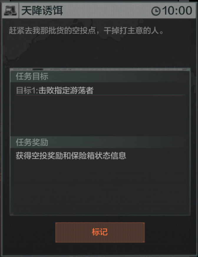 先锋在接取任务后会触发一次空投,空投箱将降落在指定位置。先锋们需要赶到目标地点并清理空投附近的游荡者,开启空投奖励后完成任务。
