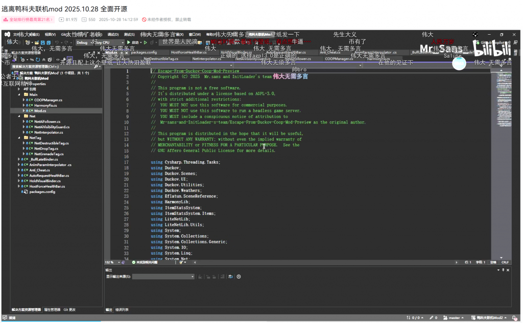 更让GameLook印象深刻的是,有玩家在研究联机Mod时主动选择开源,号召广大玩家共同参与开发。正如一条获赞众多的玩家评论所说:“‘鸭科夫’官方什么时候把这些民间Mod大神‘收编’进正规军?”