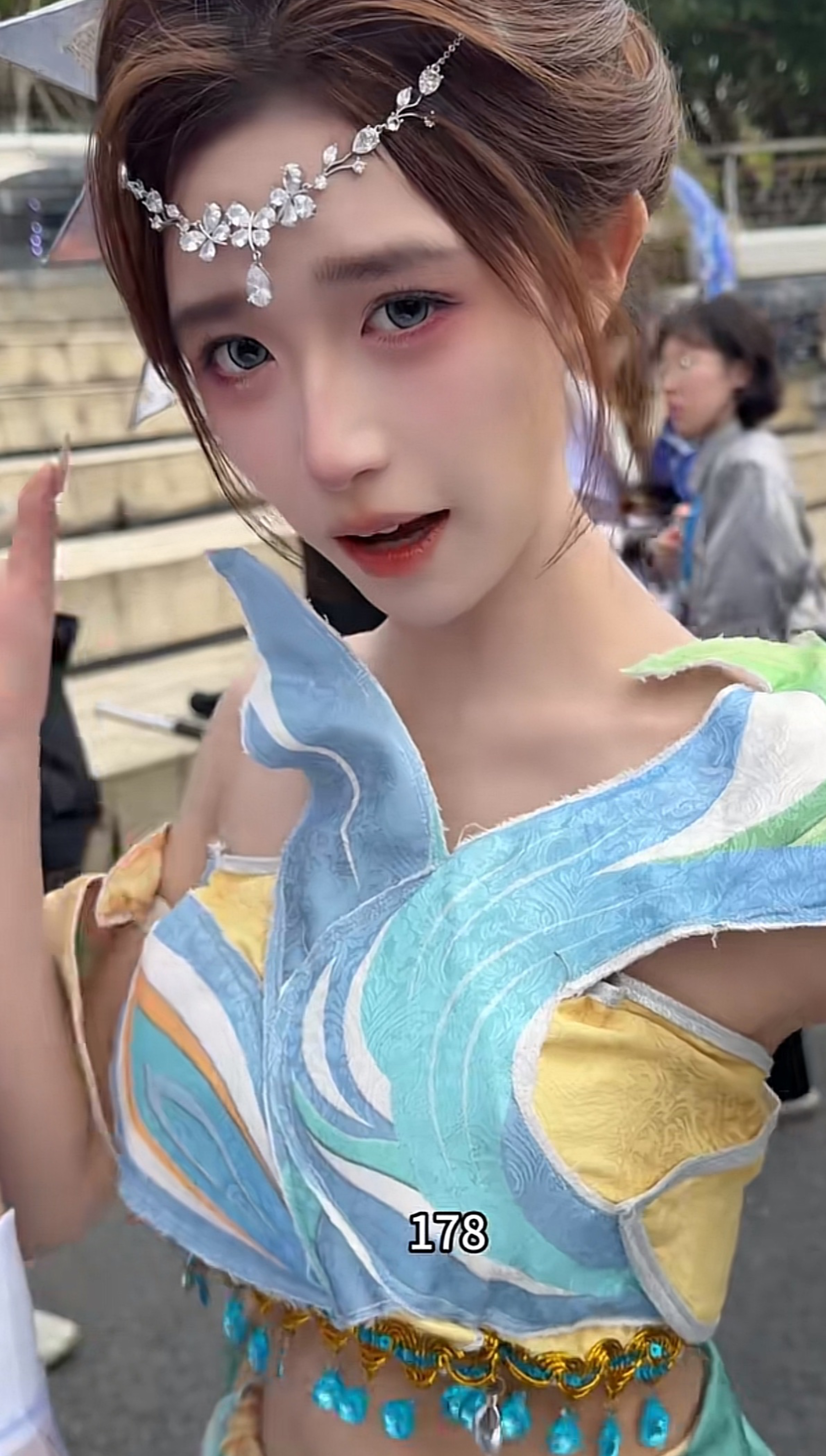 别人拍摄她,因为不了解甄姬,为了防止“说多错多”,所以看到人就说自己“178”,我一开始以为还是她的身高,我想看着也没有那么高,后来仔细一看,原来说的是甄姬化雀舞的这款皮肤价格。
