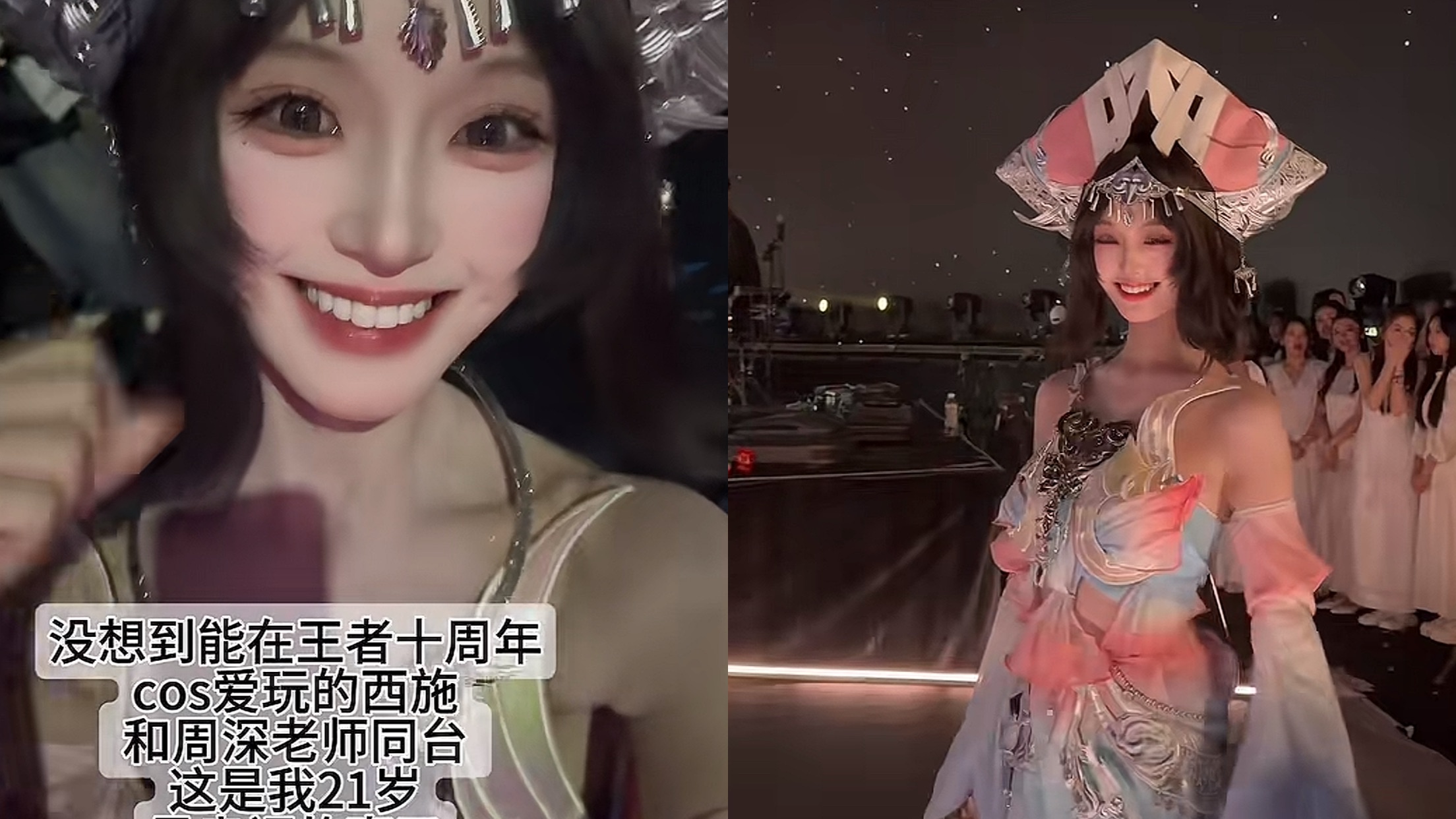 然后,她还cos过西施的至美皮肤,这款皮肤是一款民族风的皮肤,皮肤有那种异域风的风格,她身穿一身粉红色的衣裙,头上戴着那种红色的帽子,前面还有那种项链,再搭配她自身的颜值,真的超级美丽。