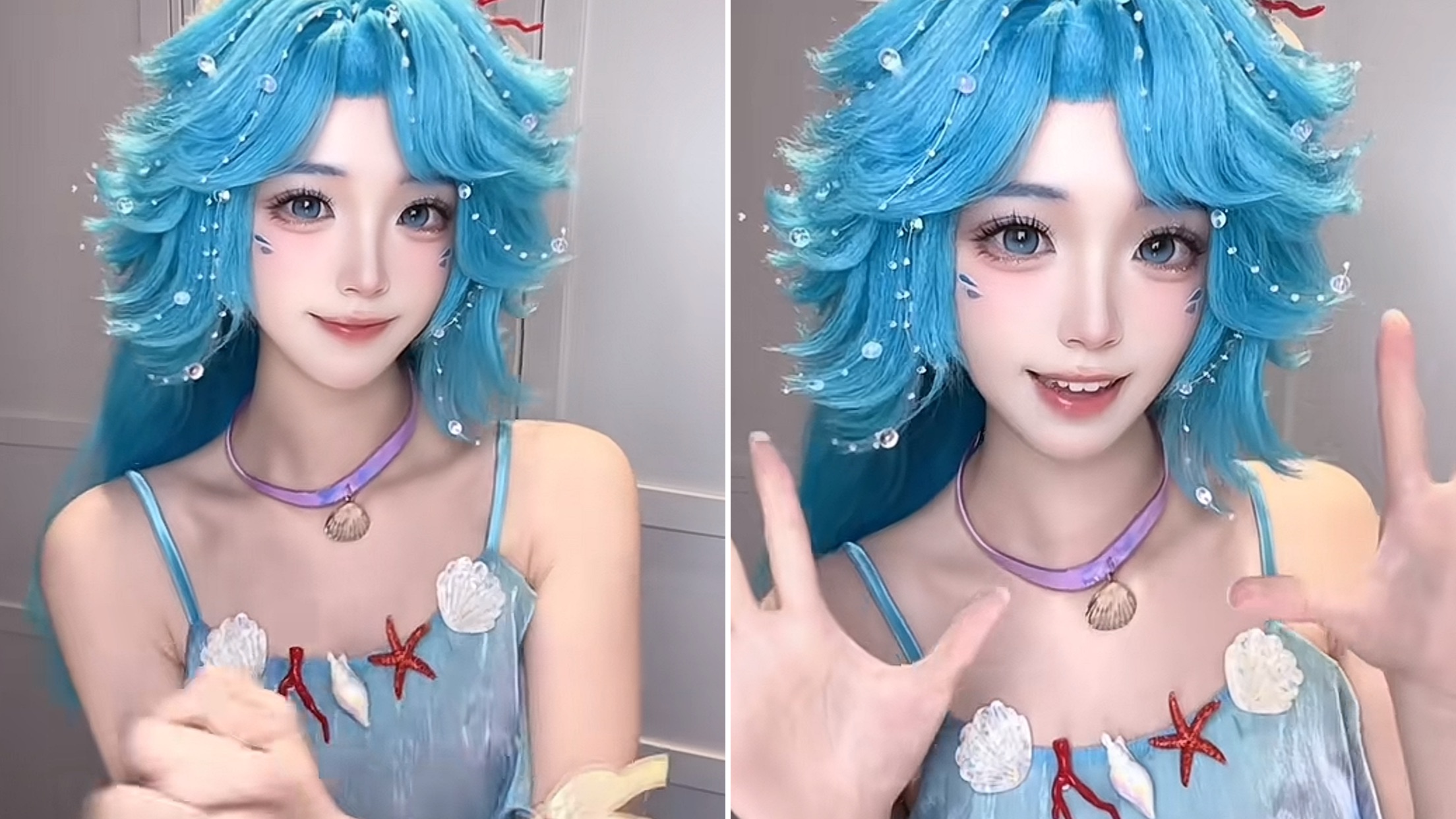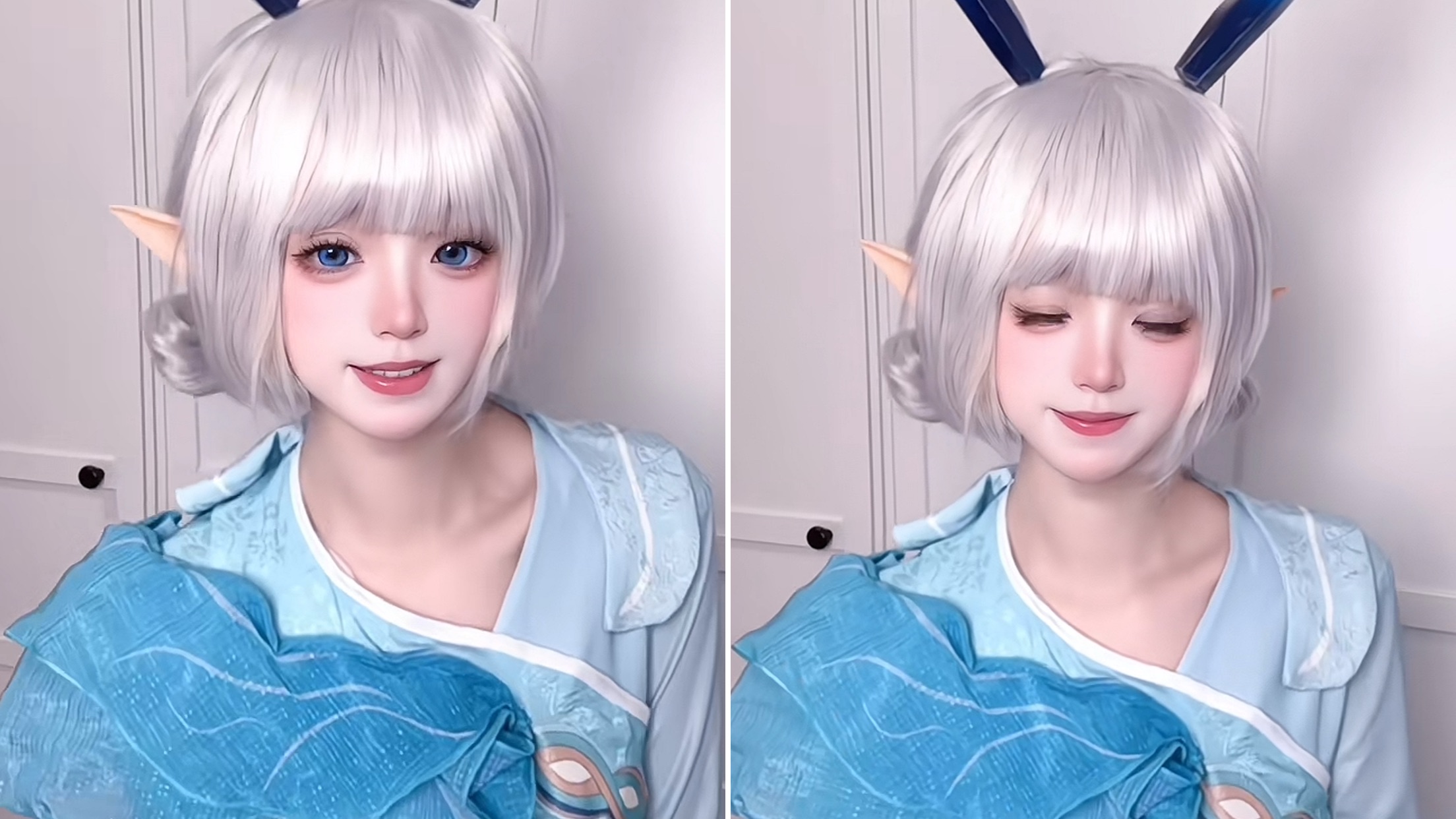 如下图所示,博主cos的是瑶的年限皮肤,她的造型非常还原,一身蓝色的所以,搭配一头银色的头发,还有两旁的精灵耳朵。