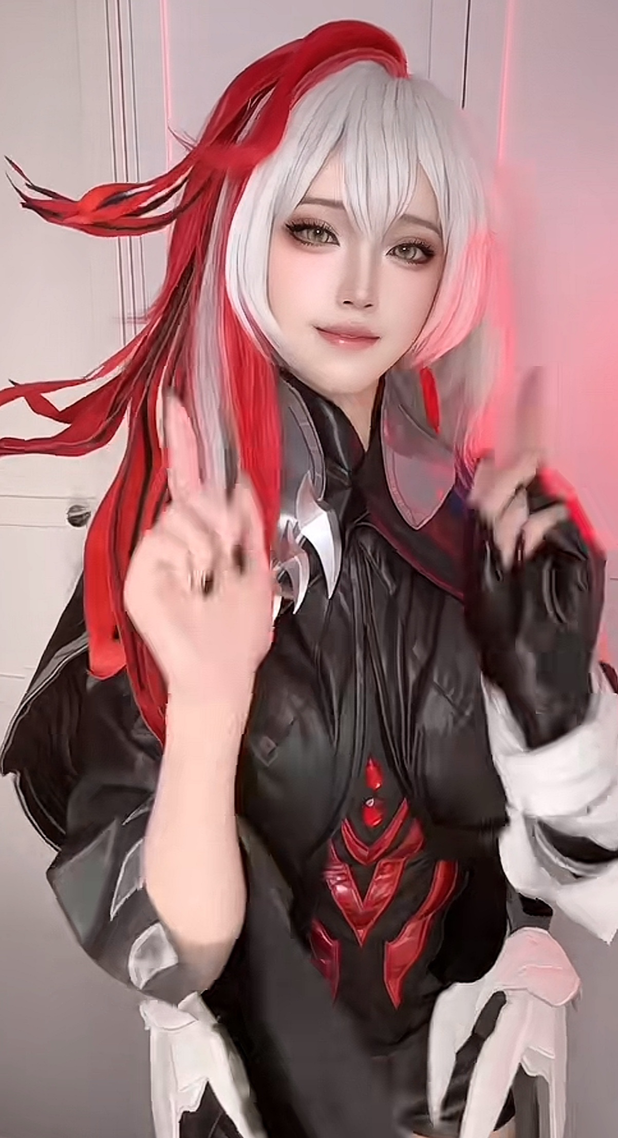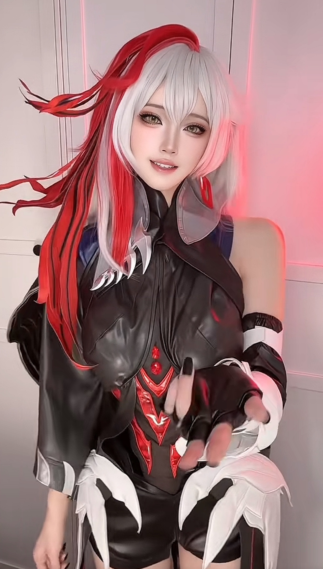 而且,她的身材也是很不错的。她cos了这个造型还一边在跳舞唱歌,看着很活泼可爱。
