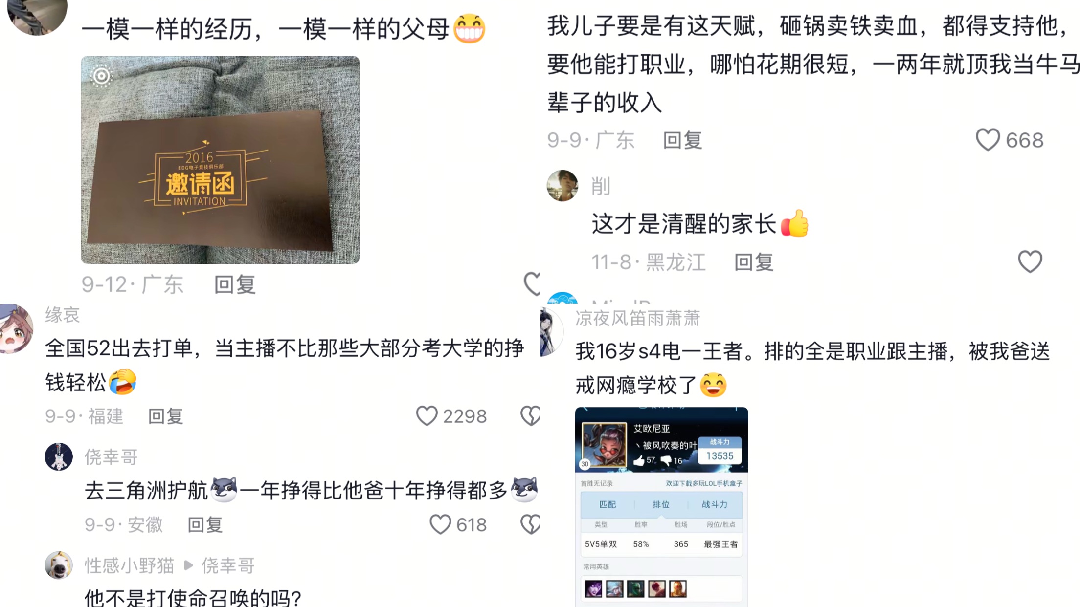 其实对于家长的想法,很多网友也是表示理解,虽然如今的游戏电竞已经成为了一个产业,但是对于老一辈的人来说,打游戏就是等于不务正业。