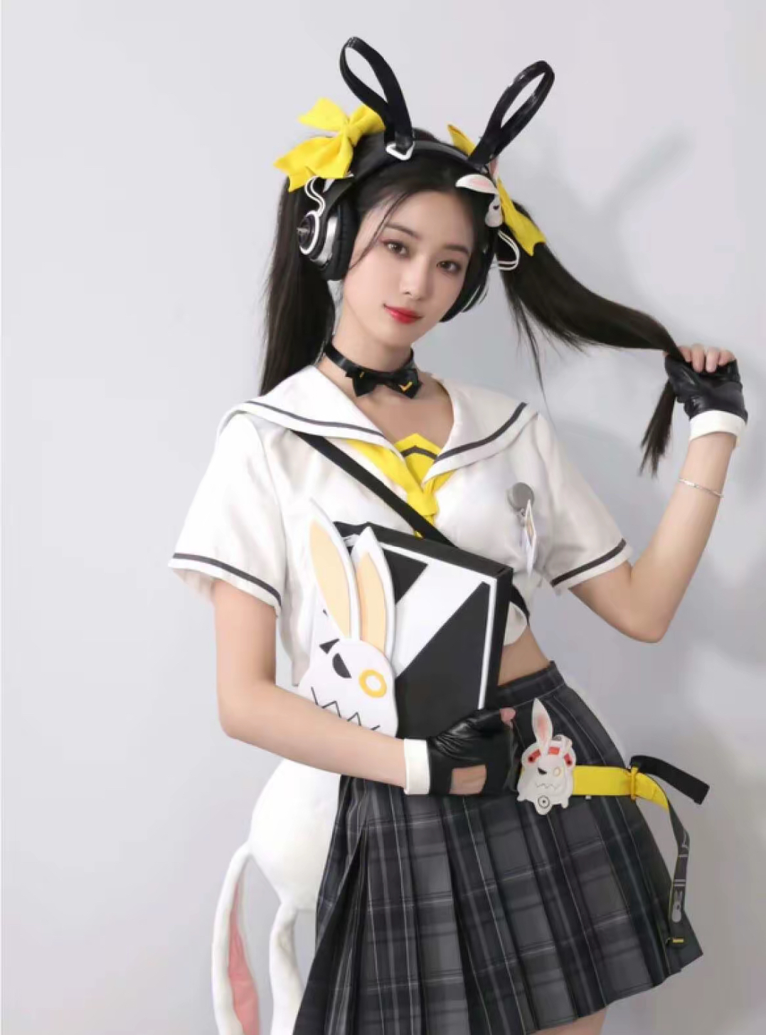 首先,我们先来看一下徐艺洋cos的安琪拉,她cos的安琪拉形象很清纯,能看到她穿着现代风的jk制服,头上扎着双马尾,还戴着安琪拉同款电竞耳机,手中拿着一本魔法书,看起来很可爱俏皮。
