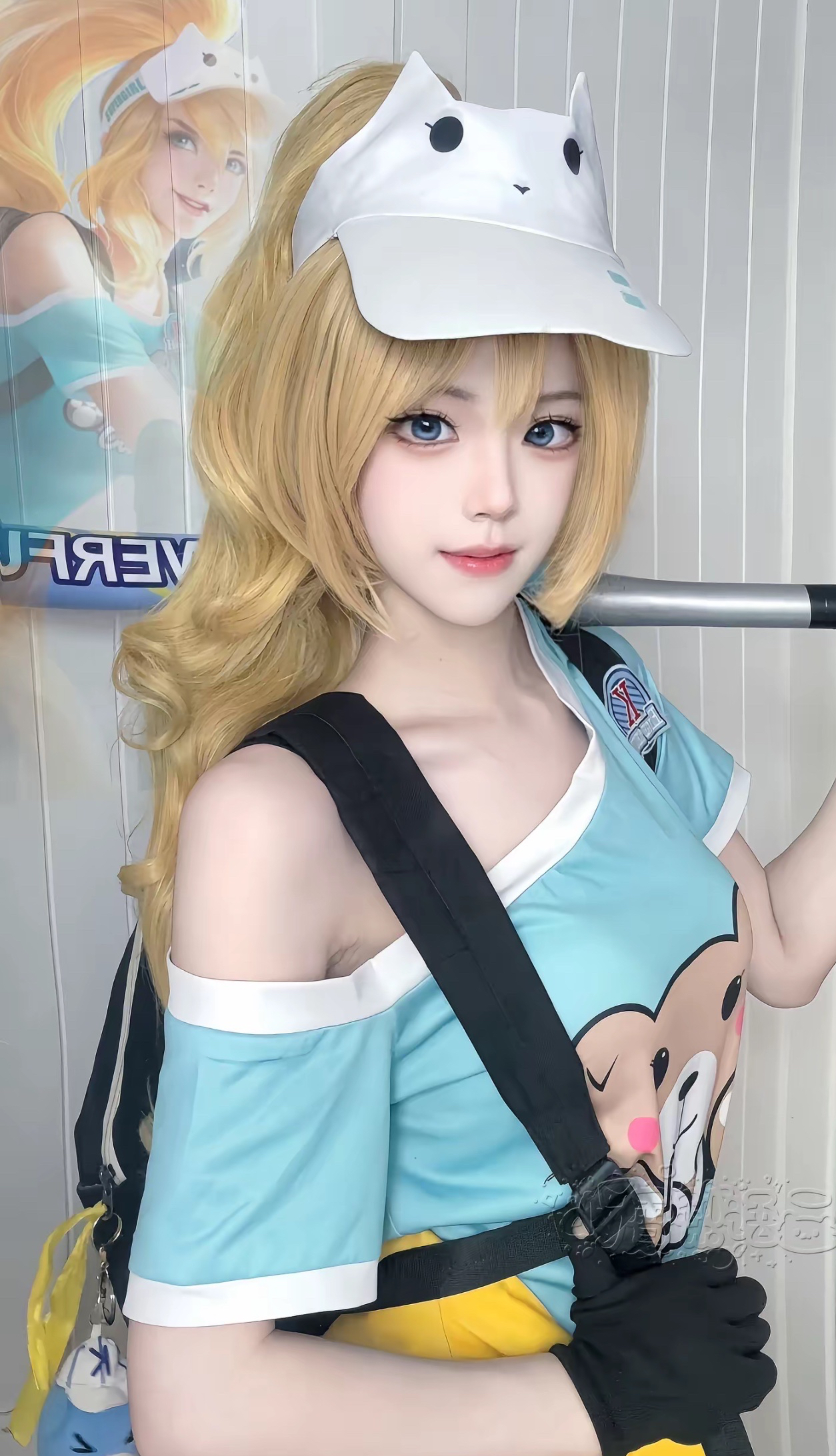 除了花碎花之外,雪梨语之前cos的花木兰的青春决赛季这款皮肤也是在玩家们的心目中留下了非常深刻的印象了的,因为她身穿一身蓝色的T恤,手上带着一双黑色的手套,手中还拿着棒球棒,再搭配她清纯的颜值,还有白皙的锁骨,简直就是“女娲神作”。