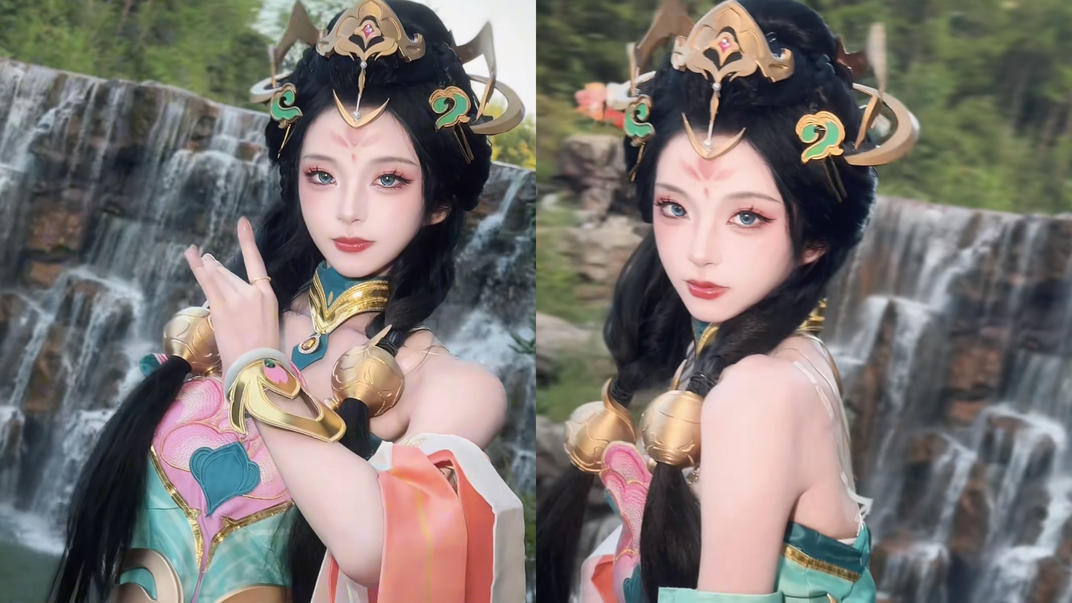 并且,她这个拍摄背景后面也是瀑布,流动的瀑布也是让玩家们耳目一新,不得不说,乌苏苏对于这组cos作品也是十分的重视的。