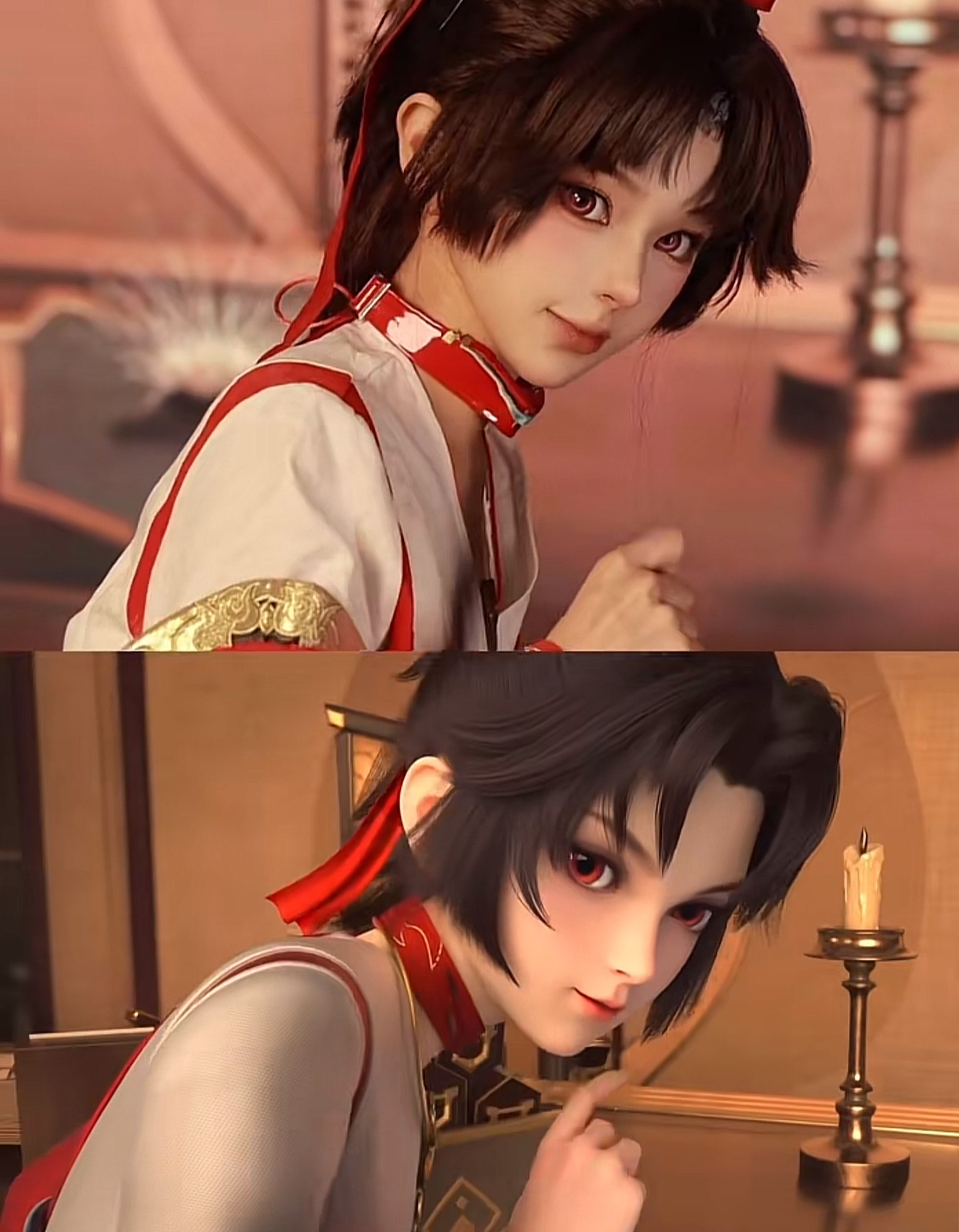 当然,她还cos过蔡文姬的原皮肤,虽然她的眼睛没有cg中的那么大,但是眼神却是同样的纯真。而且她的发型也很可爱。