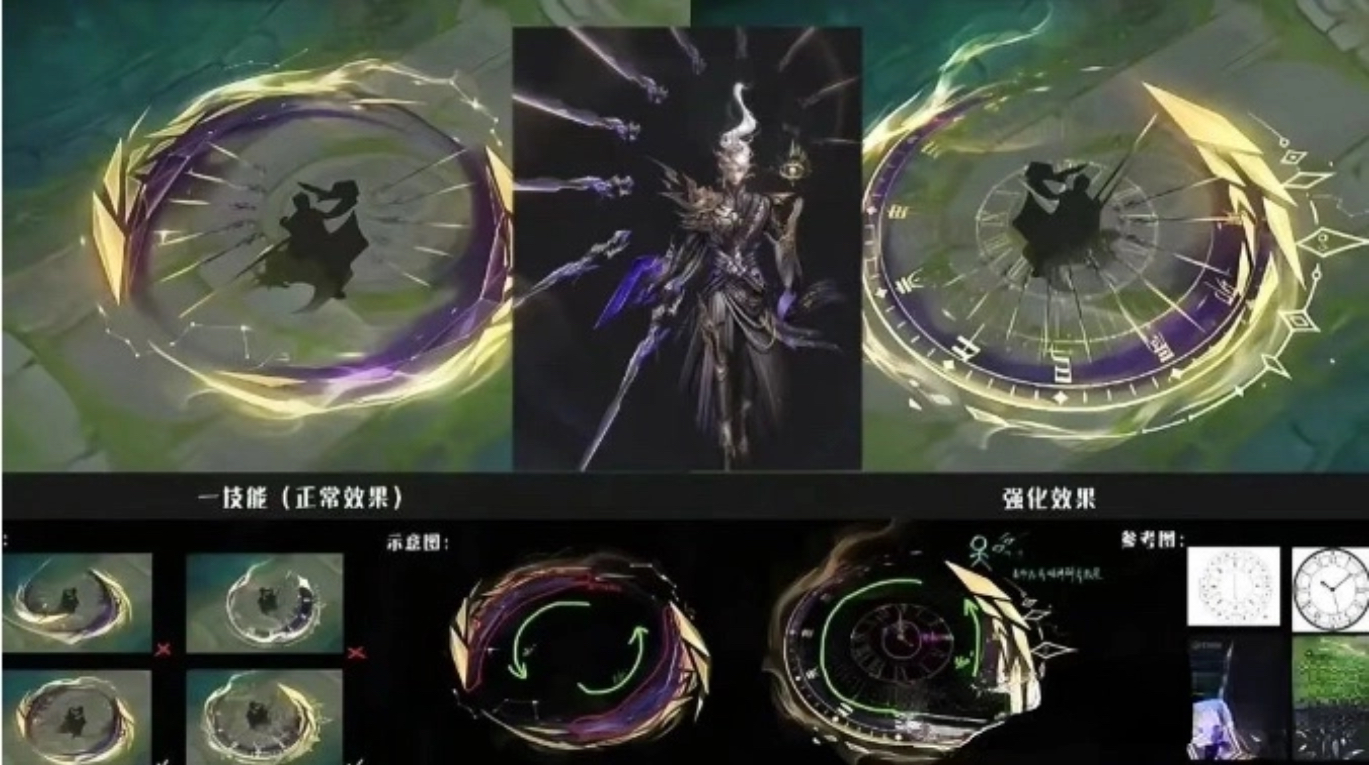 此外还有东方曜,这个英雄也同样有新皮肤的消息,根据网友爆料的消息,东方曜这个英雄今年也会出一款高质量的新皮肤。如下图所示,这是网传的东方曜新皮肤的设计稿,这款皮肤中东方曜身穿一身紫黑色华服,背后有好几把飞剑临空,局内的技能特效也非常的炫酷。