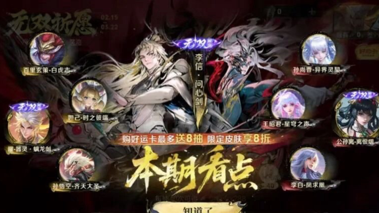 春节期间出的众多皮肤,再过不久也就会下架了,其中就包括李信的无双限定。李信这款皮肤的抽奖活动,也是截止到三月份下旬就会结束,想要抽取这款皮肤的话,现在抽取还来得及,毕竟好运卡活动还没有过期,抽取一定次数,会额外赠送抽取次数。