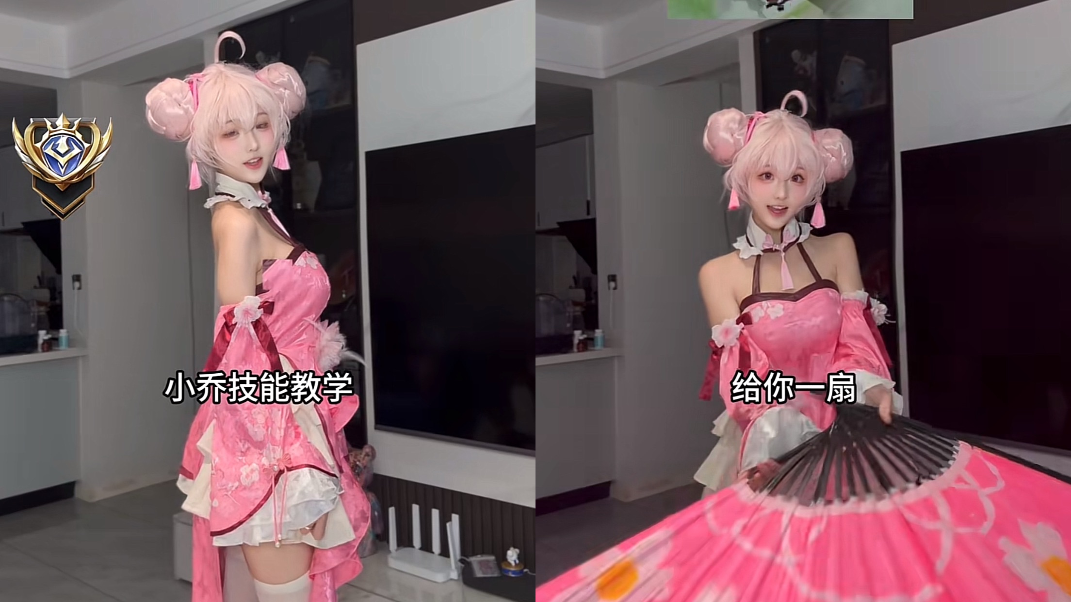 当然,这位网红还cos过小乔的原皮肤,她本身自己就玩王者荣耀,所以对于王者荣耀的英雄也是非常的熟悉。能看到她身穿一身红色的衣裙,手中拿着一把大大的红色扇子,再搭配她粉红色的丸子头,还有红色吊坠耳环,看起来也是十分可爱的。
