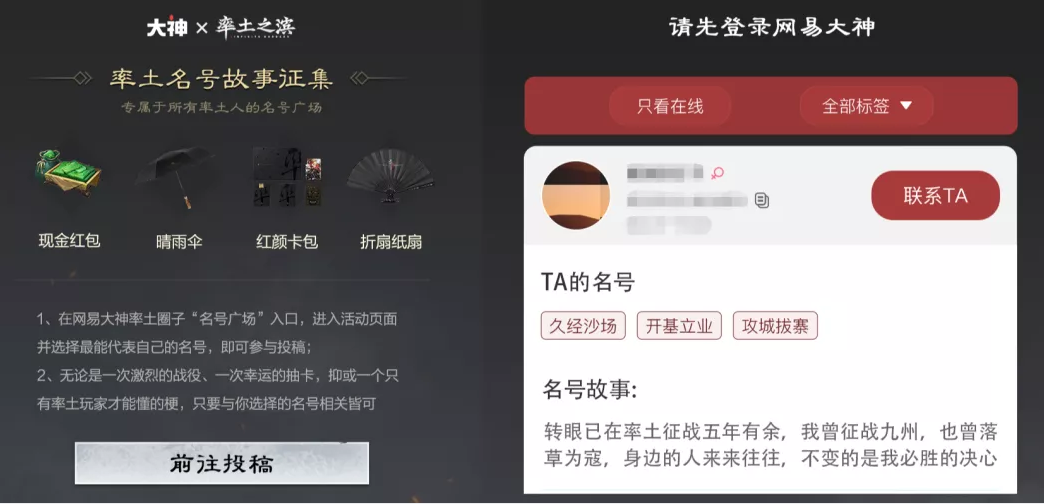 活动进行期间,玩家还可以前往网易大神社区,在名号话题广场板块下参与各种精彩活动。阐述自己对不同称号的理解,讲述自己获得特定称号的经历——总而言之,这些都是属于你的故事,是你与《率土之滨》产生的羁绊。