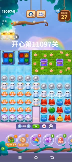 开心消消乐:第1002关注意魔法阵改变动物布局在侧边刷特效即可
