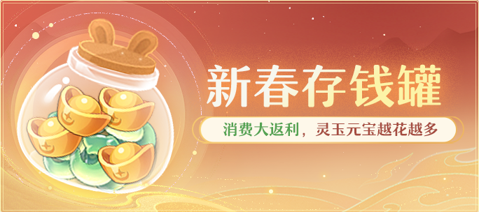 春节过节,年年有余!新春存钱罐将会把御灵师消费的灵玉元宝按比例存入福罐中,怎么花都有钱!你的钱包御灵院给兜住了。
