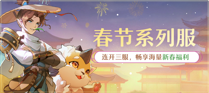 在2月13日、16日、20日,马年春节服「踏岁至」、「驰归途」、「奔福年」将依次开启,「驰归途」、「奔福年」会额外享有经验及资源追赶加成,确保三服玩家进度平行。三服将于3月正式合服,届时系列服玩家们将实现快速聚流,同舟共济!