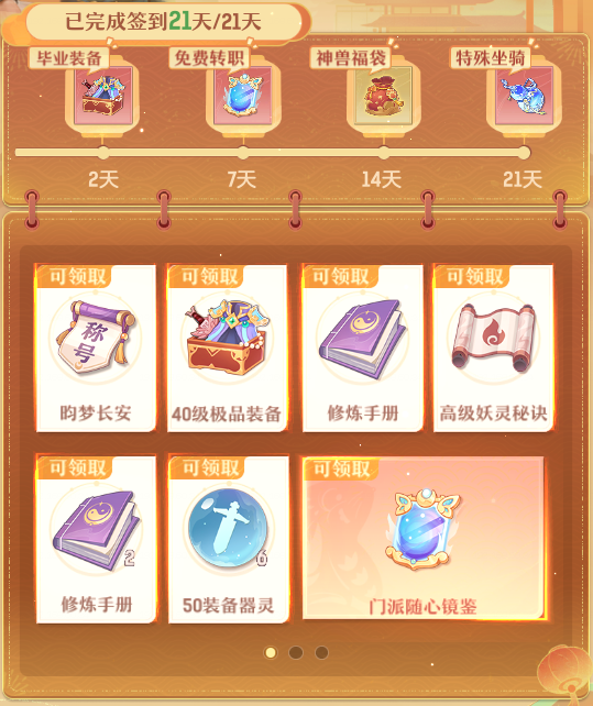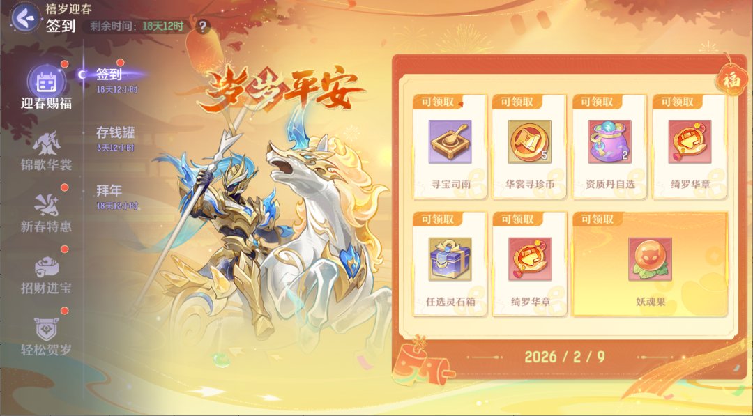 客人来了得要有伴手礼!御灵师们上线签到即可逐日领取抽奖币、妖灵果、资质丹等新春心意赠礼。