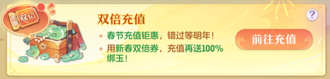 春节想灵玉自由?御灵院给你福利加码!春节期间长安将有春节充值钜惠,账号角色等级达48级可使用新春双倍券,充值即享再送100%绑玉福利,这下老猪不怕没玉抽封神时装了!