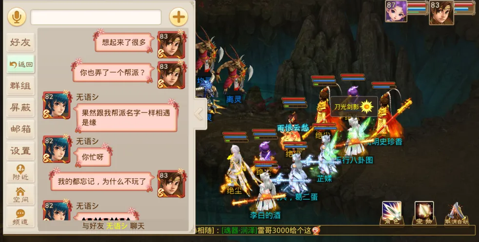 我们有聊到她的帮派名——“相遇是缘”,她之所以起这个帮派名字,是因为她觉得每个人相遇都是缘分,茫茫人海中,有缘分的人才能相识相知。她也挺难忘跟我在一起玩的那段时光,所以很多事情她也都还记得。她说:“不是记性好,是对你记性好”。