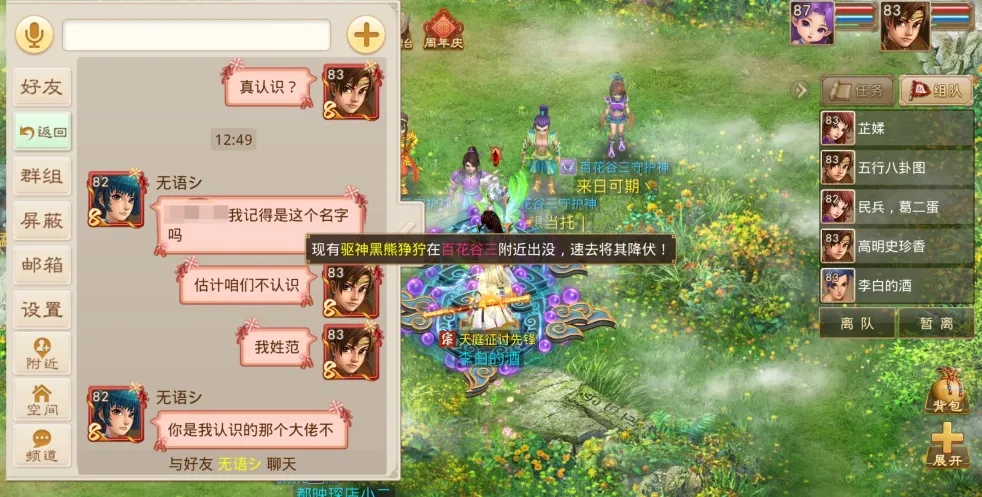 ゞ八卦つ:大家好,我是来自【8周年】的ゞ八卦つ,玩问道手游已经7年了。这次来是想给大家分享我在【8周年】与之前【笨笨牛】区组老朋友重逢的故事。今年520的时候,因为我在世界频道的一句喊话,我竟遇上了3年前在【笨笨牛】的道侣!