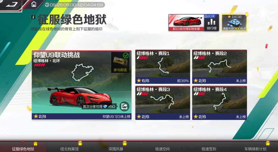 ⭐怎么拿: 参与【征服绿色地狱】仰望U9联动挑战
