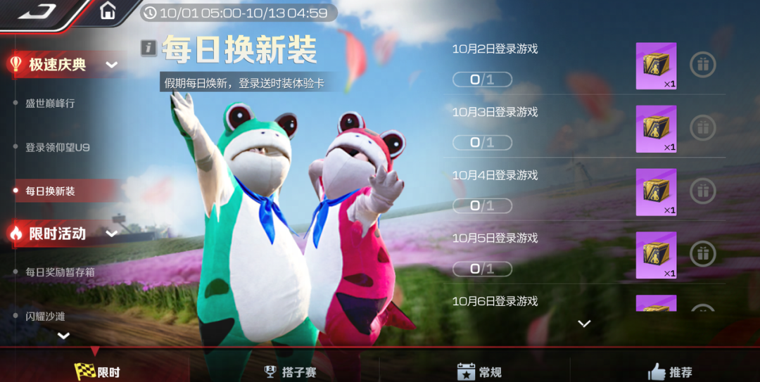 02、【假期续费周】10月8日-10月12日:登录1次,直接抱走1个【时装14日体验自选宝箱】!打开后任选一张14天的时装体验卡,让你靓足半个月!