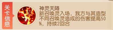新召唤灵入场,我方与其造型不同召唤灵造成的伤害提高50%,持续2回合。